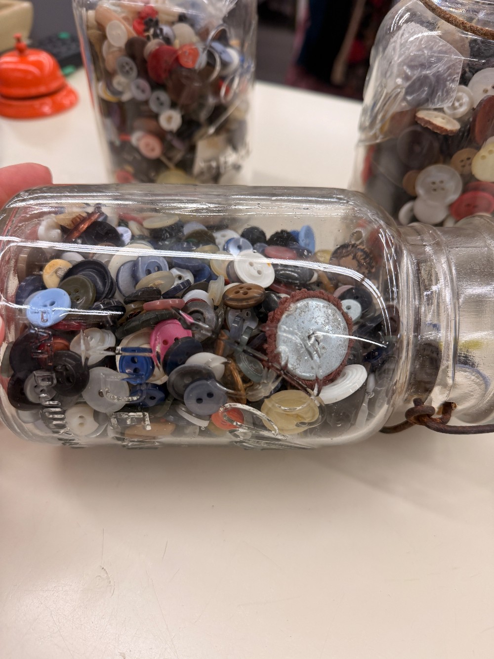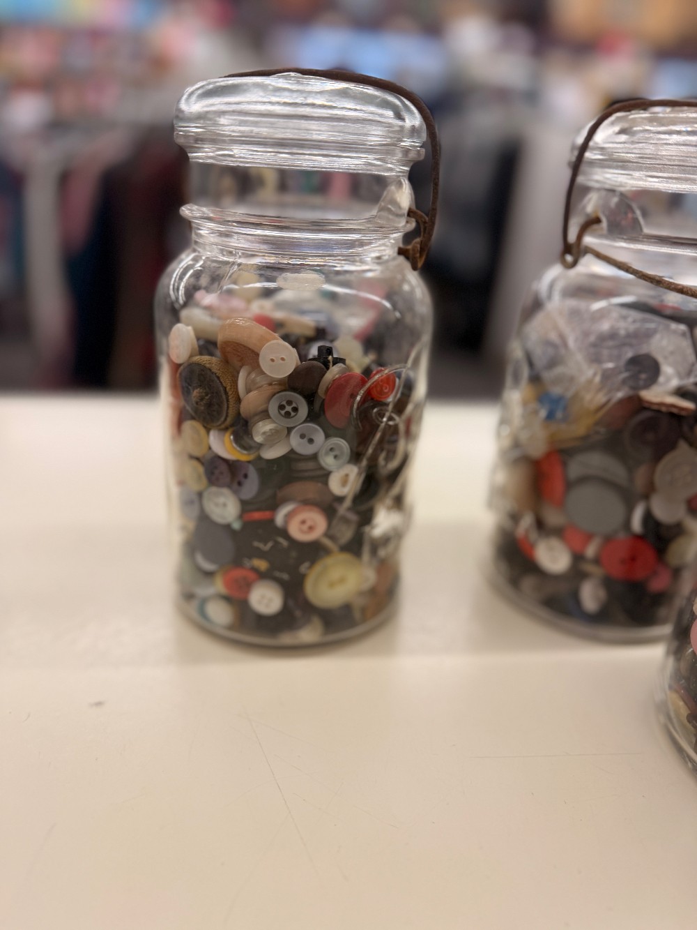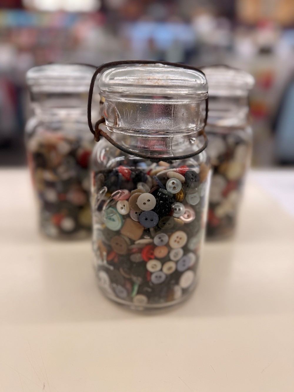 Qty 1- Vintage Mason Jars with Glass Lids and ButtonsAprox 2.5 lbs
