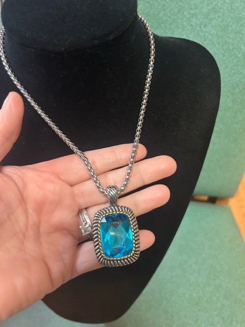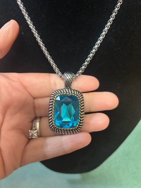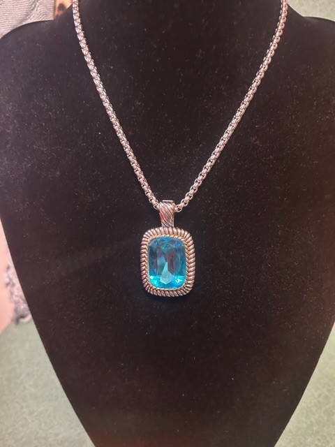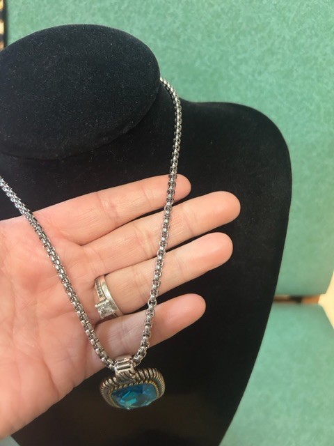DSMK Stainless Steel Silver Chain With Blue Pendent