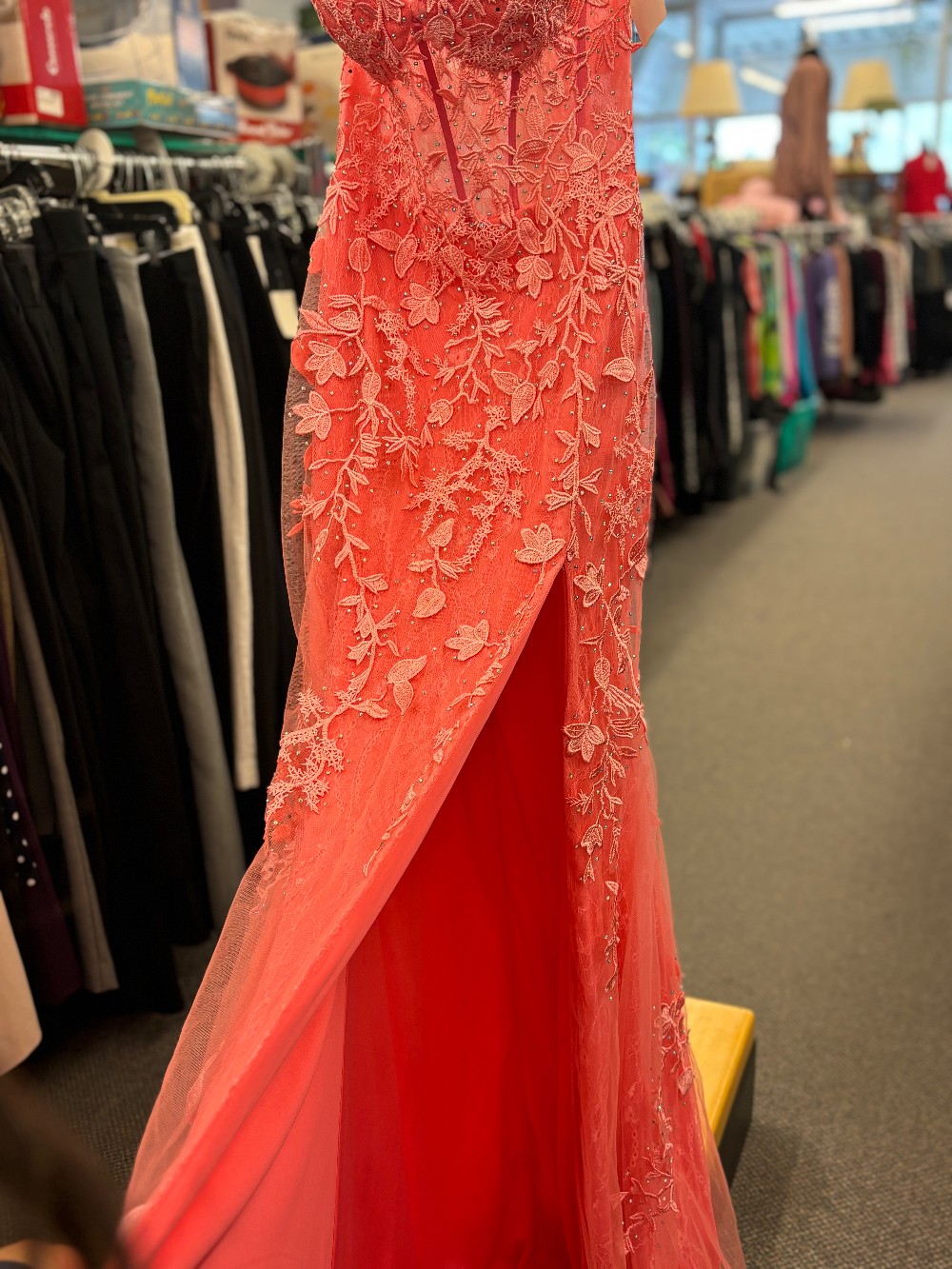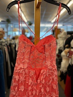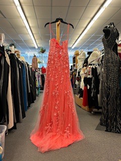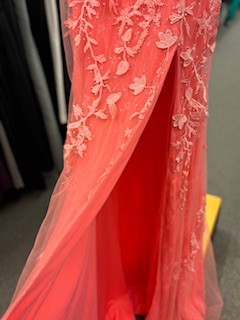 Ladies 2 Pink Salmon Formal Dress w/ Floral Applique