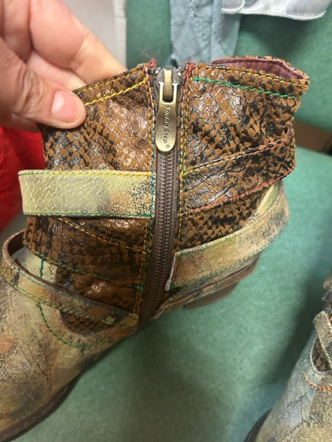 L'Asrste Ladies size 10 shazzam olive green Ankle Boots