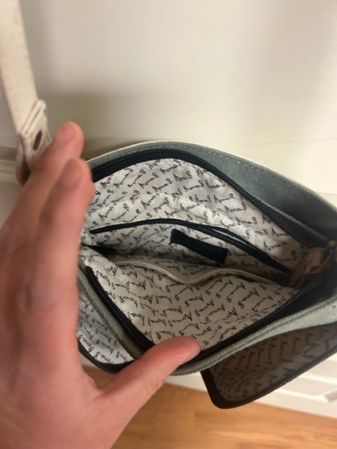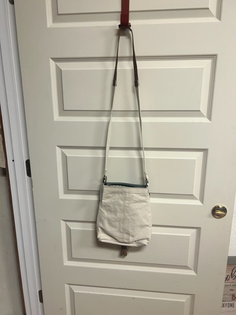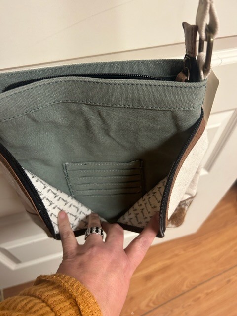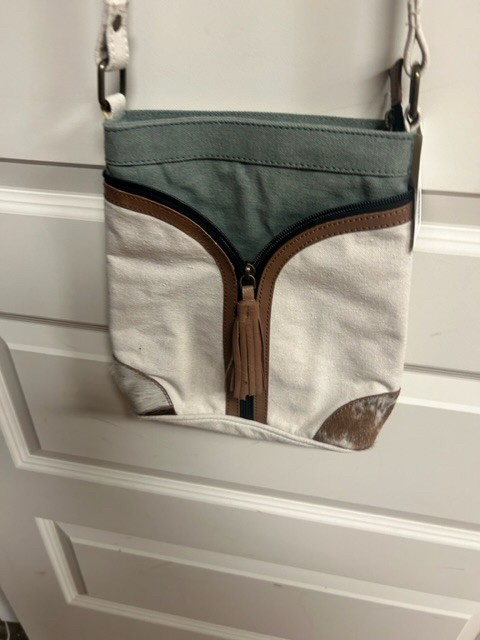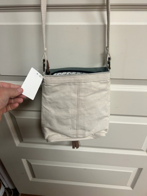 Mona B tan green canvas crossbody Bag
