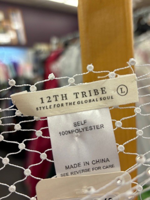 12th Tribe ladies Lg white see through Rhinestone Mesh Dress