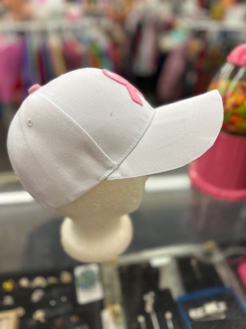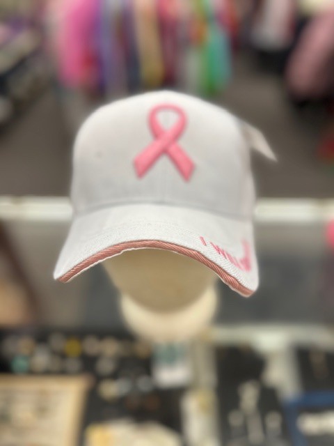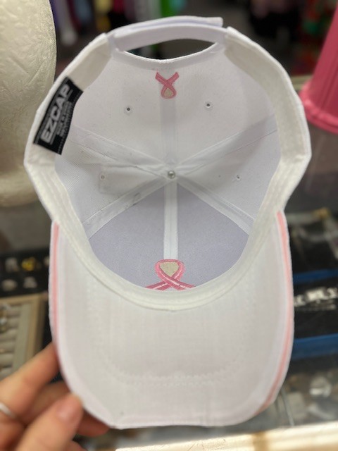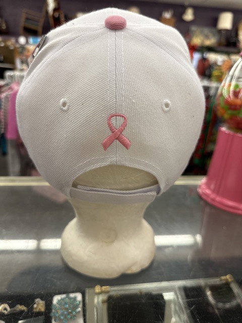 White, Pink Ribbon Cap " I Will Survive" by EZCAP